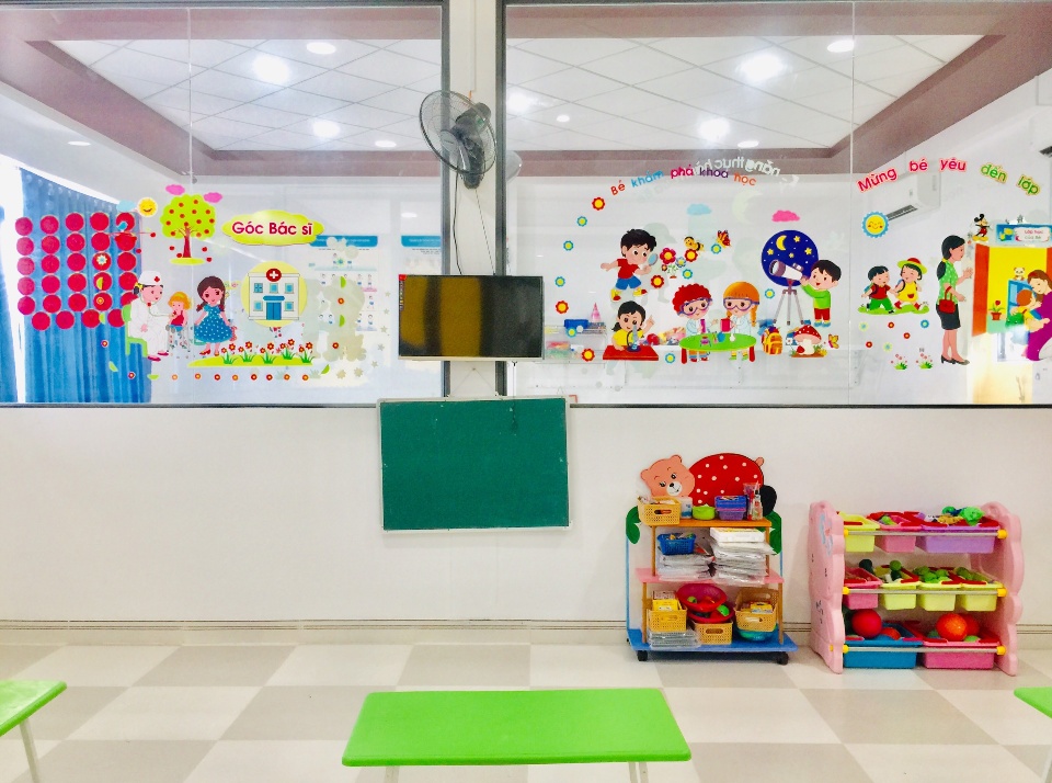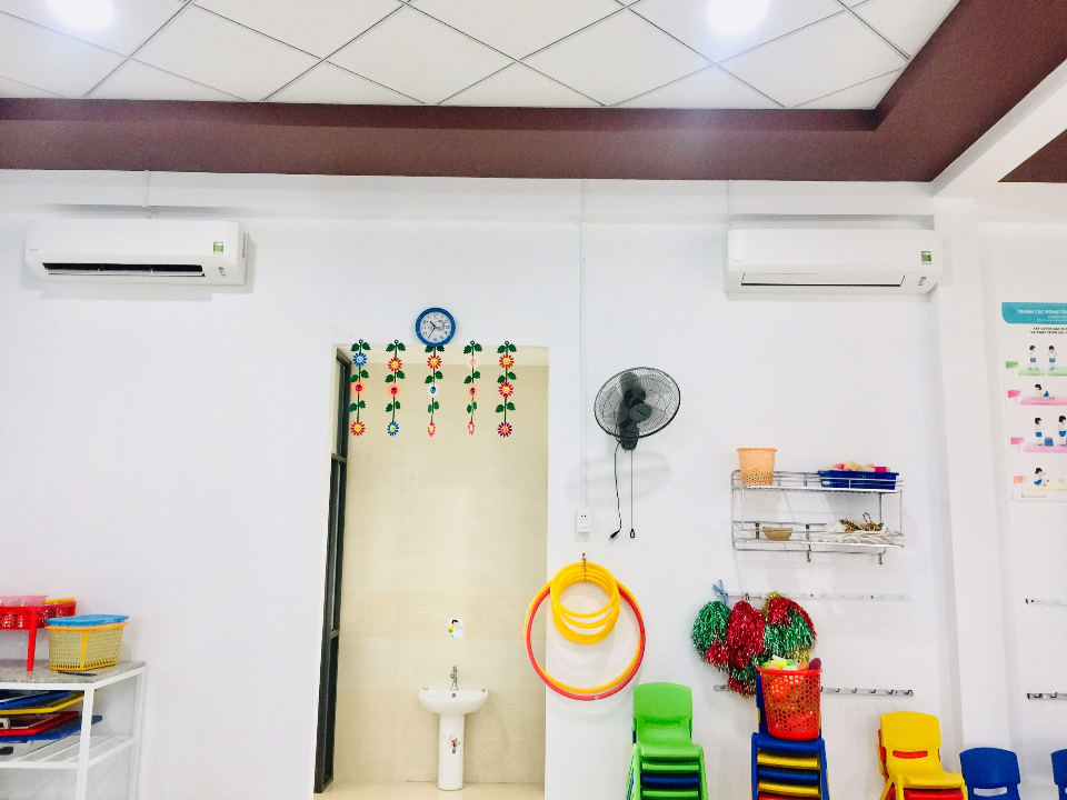 Không gian trường thoáng, mát, rộng. Các cô thân thiện yêu mến trẻ, có camera cho phụ huynh quan sát được con em mình học
